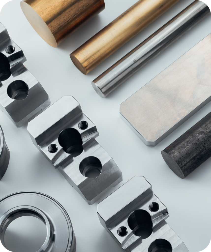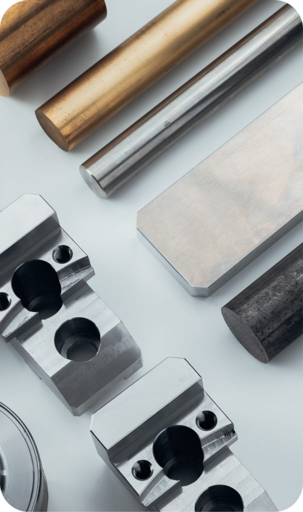NC 旋盤や MC 加工等各種切削加工を中心に、当社では空圧・油圧機器などの部品を製造しています。加工だけでなく、材料手配~加工・焼入れ研磨・表面処理まで請け負います。